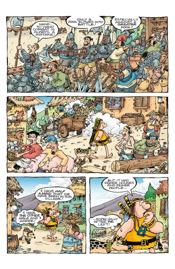And if we can't figure out how to do that, what chance does the guy with cheese dip for brains have? From the hilarious mind and skillful pen of Sergio Aragonés, with scripts by Mark Evanier, colors by Carrie Strachan (Mad Magazine), and lettering by Stan Sakai (Usagi Yojimbo)!