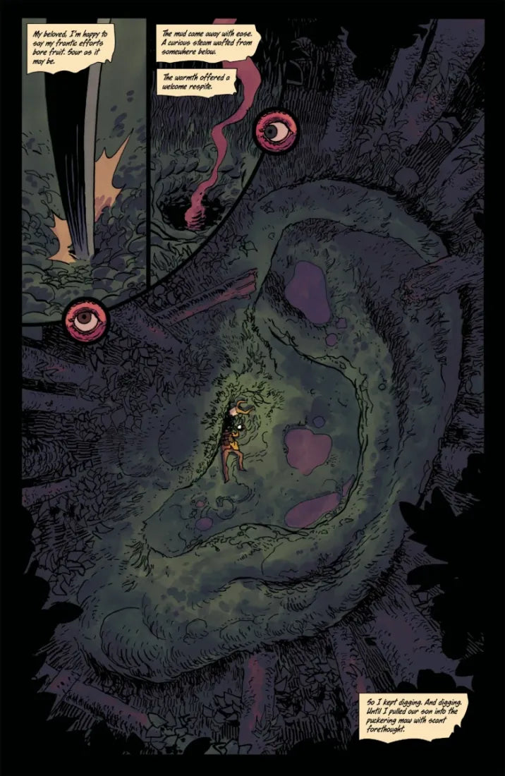 From critically acclaimed comics writer Zac Thompson and visionary artist Hayden Sherman comes part two of the S.I.N.E.W expedition’s ill-fated journey into a Lovecraftian labyrinth.