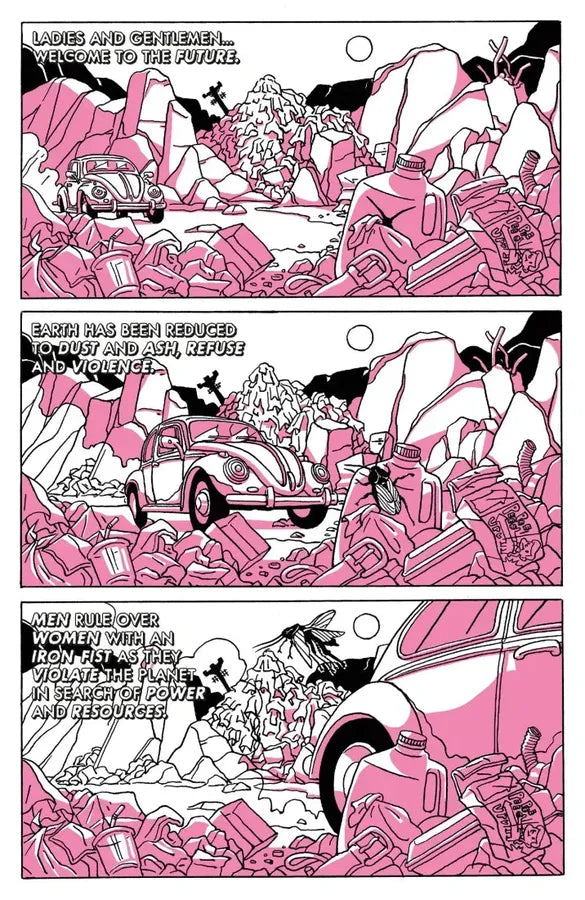 Following the ten-year Sildenafil wars of 2053, Earth has become a barren wasteland. Factions of surviving men led by “Quest Ragnor, King of Males” have taken over the remnants of cities and towns across the globe, capturing and enslaving all women…Well, all women except for three super bimbos with unparalleled bloodlust and an unquenchable thirst for violence: Baby, Belladonna, and Babette. Unwilling to bend to the whims and desires of the buffoons in charge, too slippery to be caught, and too sexy for chains, these three bangin’ babes are at the top of Quest Ragnor’s most wanted list. Unfortunately for him, they couldn’t care less.