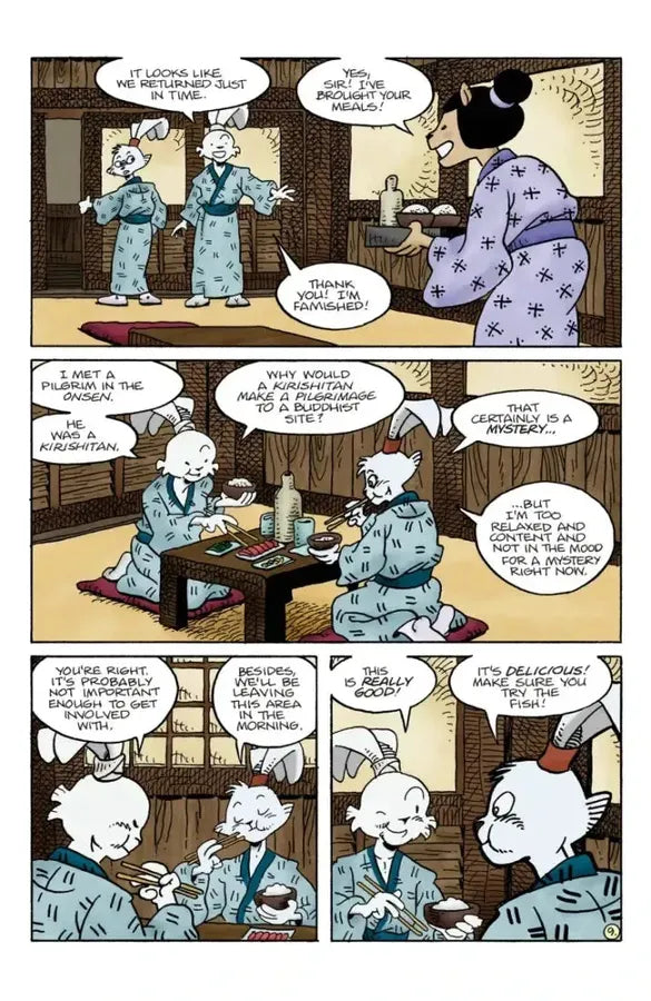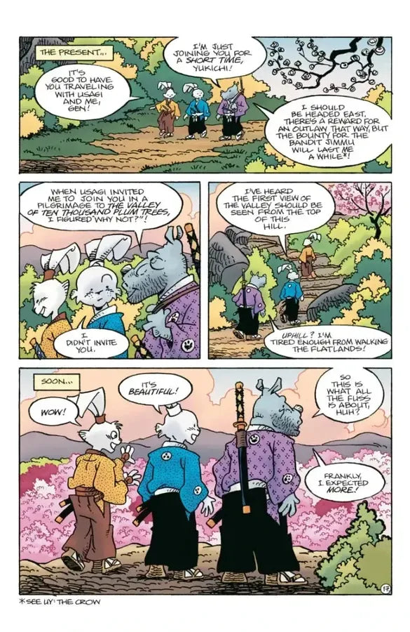 The trees within the valley of ten thousand plums are beautiful to behold. But the umeboshi, or pickled plums, made in the local village are renowned for their strong medicinal properties, and a favorite of the Shogun. As a series of deadly events grip the valley with fear, the Shogun's samurai strongman is immediately suspicious when Usagi, Yukichi, and Gen are found wandering among the prized foliage...can their appearance be a mere coincidence?