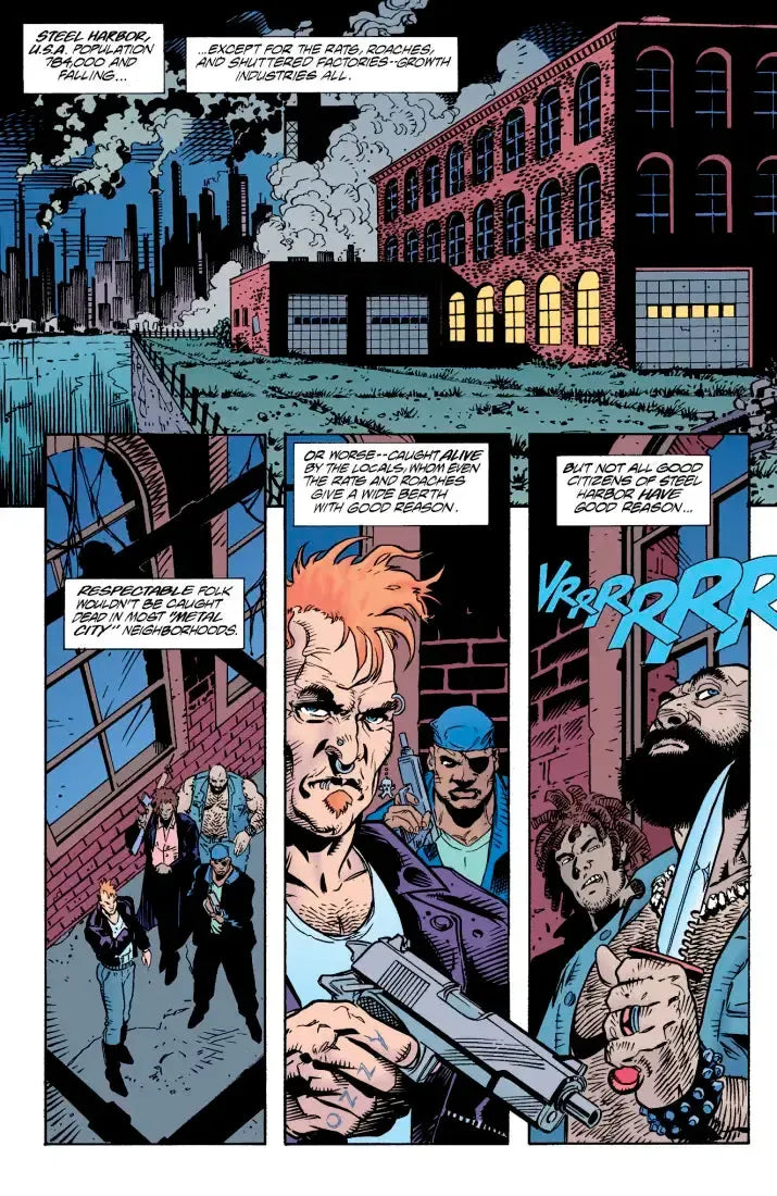 Steel Harbor is the American dream turned nightmare. This once great city was a monument to American industry and ingenuity, but now it’s a scrap heap of shuttered factories, decaying neighborhoods, and wasted potential being carved up and fought over by superpowered street gangs.