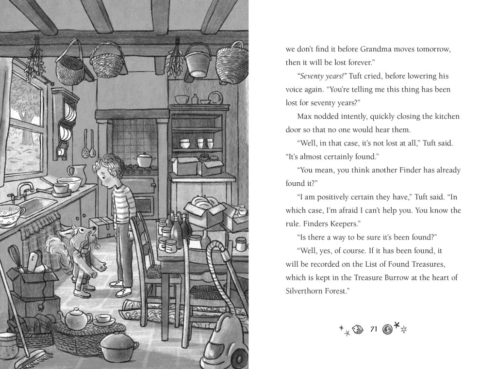 While hunting for a time capsule that his grandma buried in the woods years ago, Max never expects to discover the home of a small magical creature. Nor does he expect that magical creature to have an extensive collection of lost items, all cataloged and labeled. Yet this is how he meets Tuftorious Snook, collector of lost objects, and just one of the many Finders living in Silverthorn Forest.