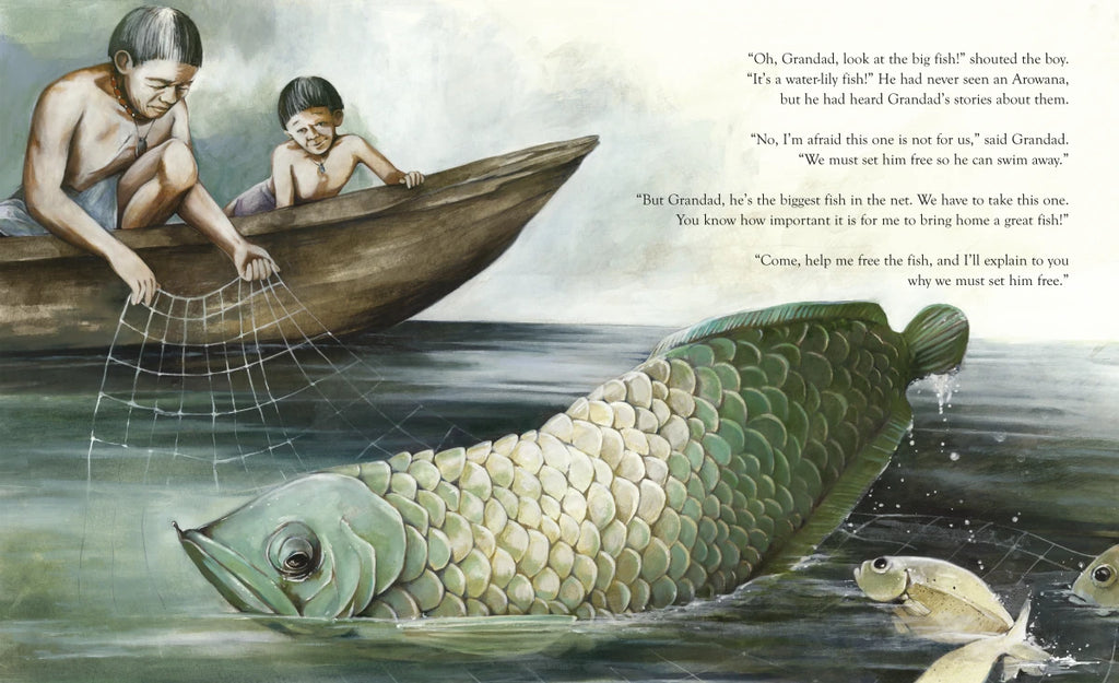 A little boy of the Amazon is excited to go on his first fishing trip with his grandad. He wants to catch the biggest fish! After hours of drifting among the water-lilies, at last they capture a huge Arowana. But, as Grandad explains, sometimes catching the biggest fish isn't the best way to preserve the river's bounty. This is a story of environmental awareness that also touches on fatherhood and the importance of living in harmony with nature. Perfect for our times.