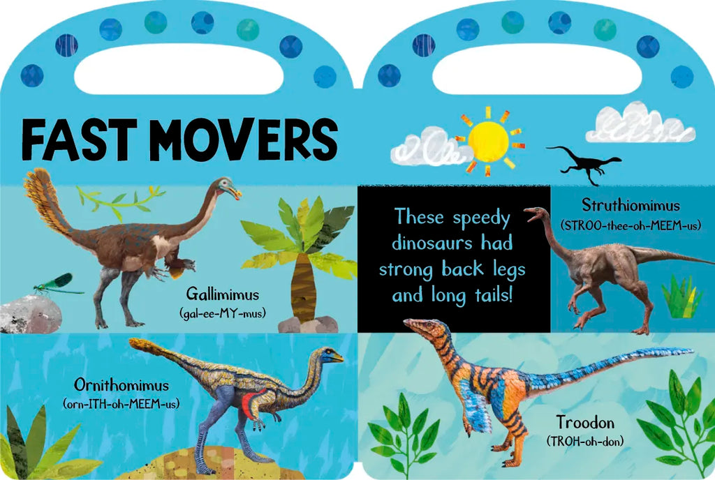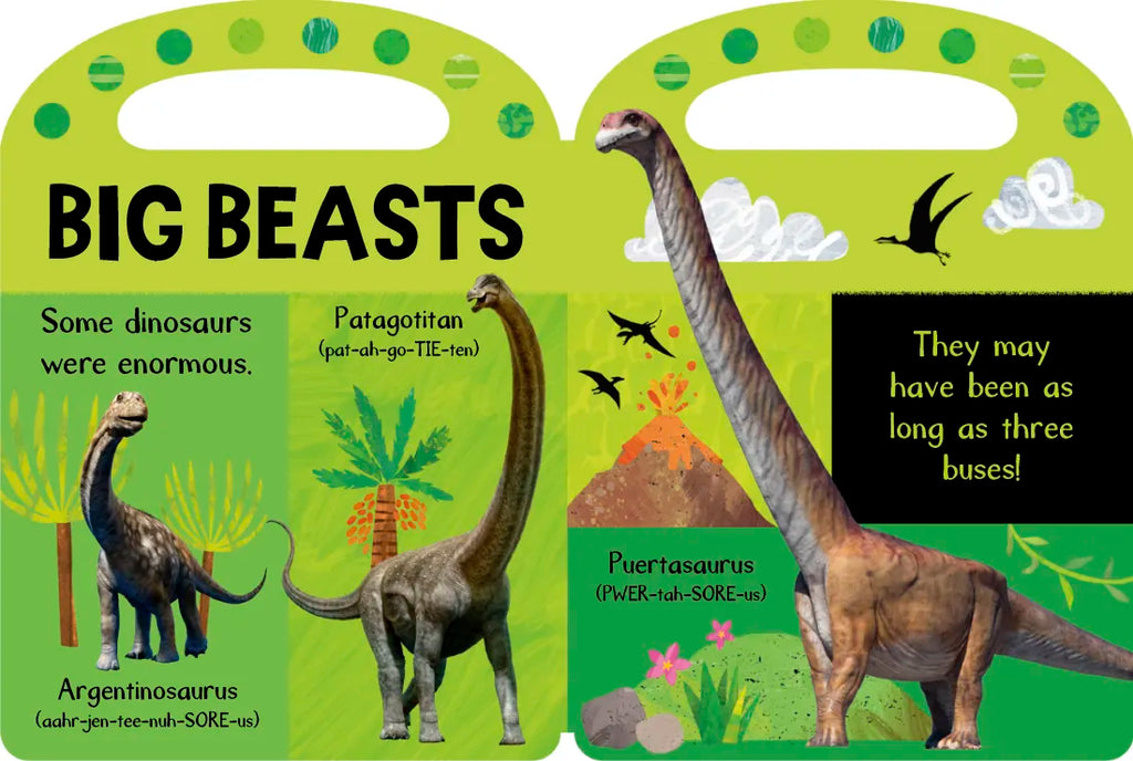 Children can learn all about dinosaurs with this bright, colorful, and sturdy board book, with a handle for reading on the go!