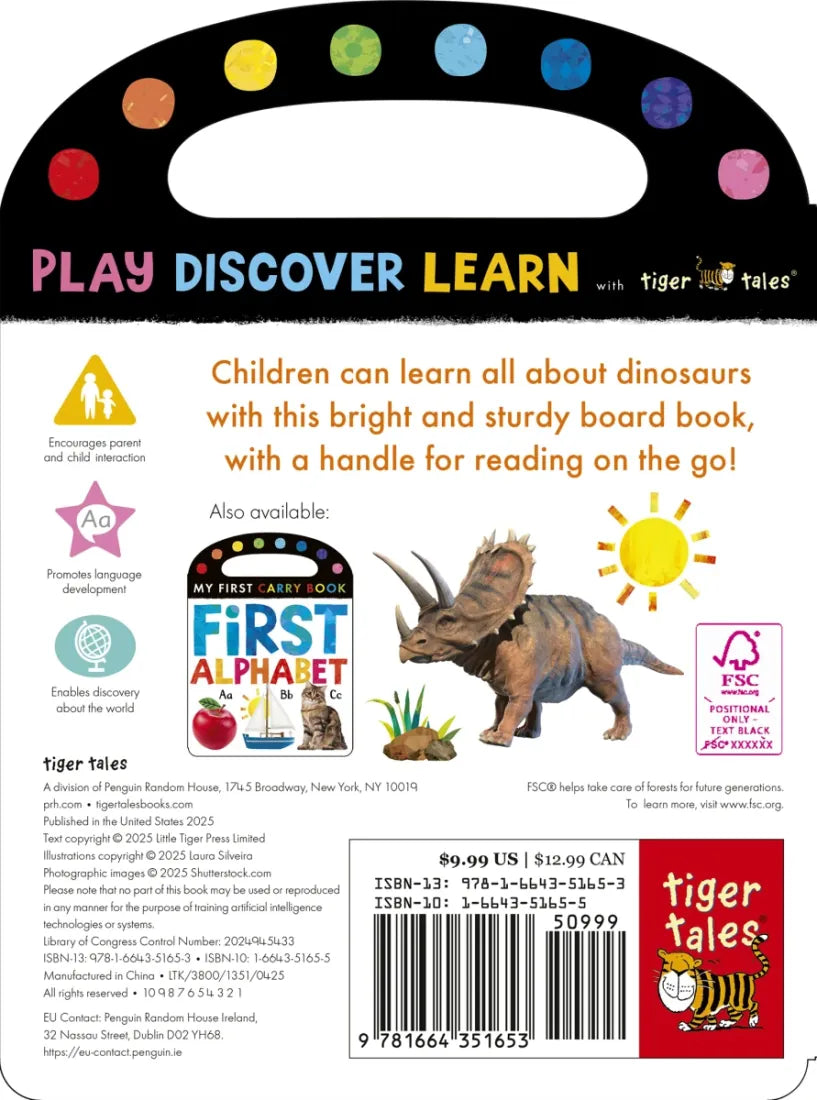 Dinosaurs: My First Carry Book is an ideal introduction to these amazing prehistoric creatures. Young learners are introduced to a variety of dinosaurs through bright photographs, colorful artwork, and prompts for interactive learning. This inviting book features sturdy board pages and a handle for reading on the go!