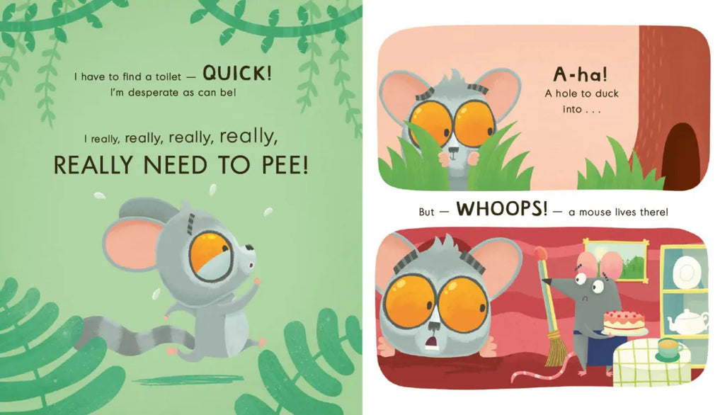 Bush Baby is in a jam. He didn't need to go to the bathroom before he left home - but now he needs to and right away! Uh-oh! But what will he do if there's just nowhere to go? A funny tale of determination and self-awareness.