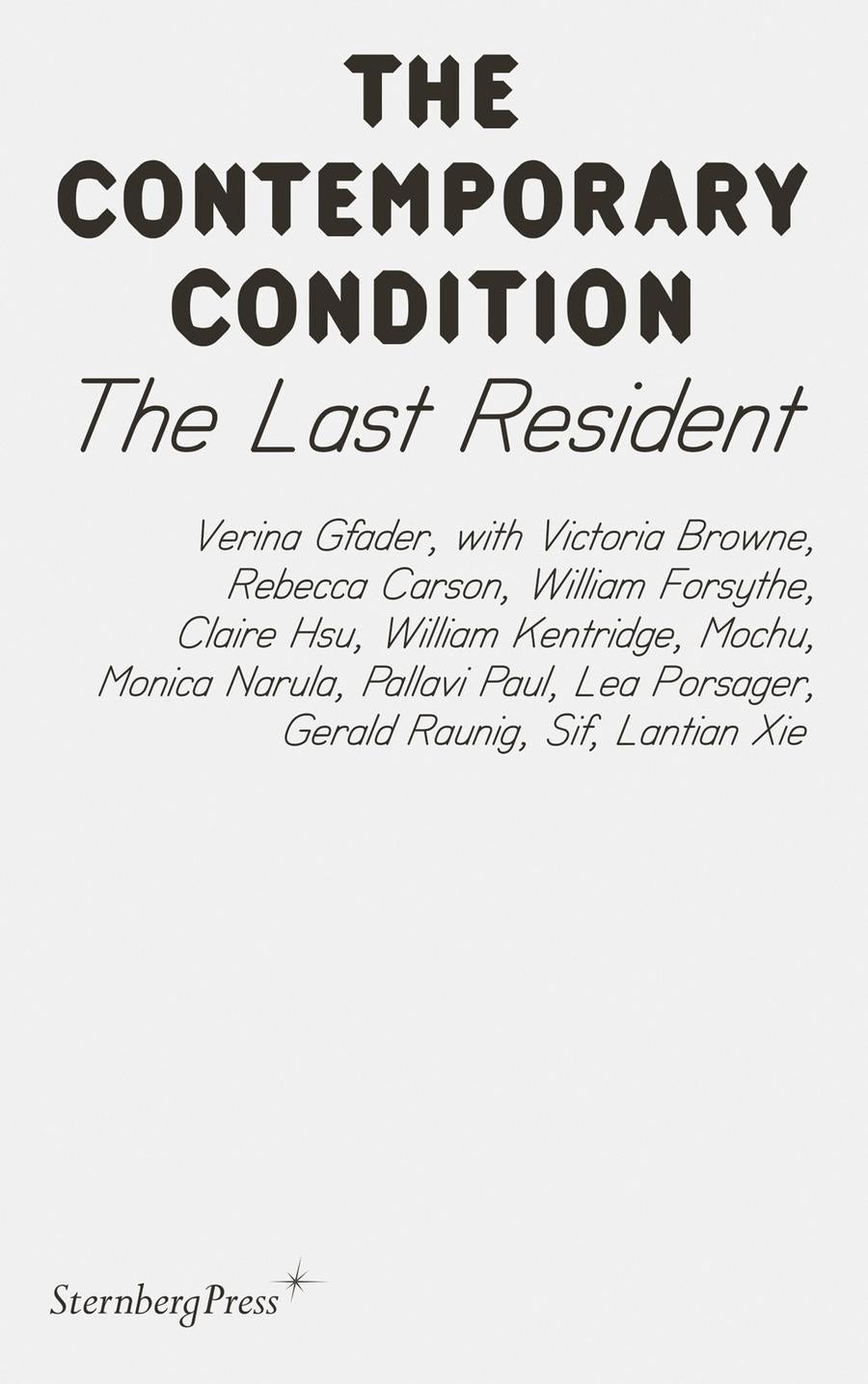 From the sun-drenchedness of the Dubaian atmosphere to a feathery encounter in a secret printing workshop, words and materials are discreetly—spectrally, outspokenly—put forward: a bunch of residents cruising the seas of nine temporary realities, the result of an ongoing swapping of facts and speculations from the earthly realm. At one end of the spectrum, players, voyagers, entering the machinery (cacophony) of thought processing. At the other, the anchoring point, The Last Resident, the one who opens a possible scene.