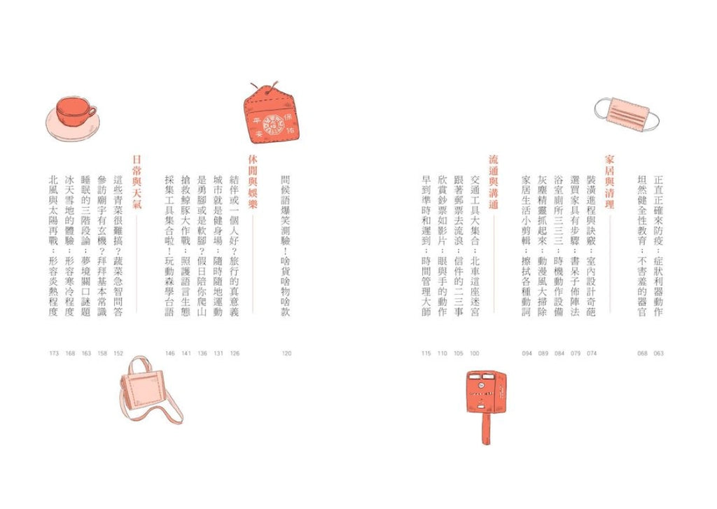 全書分為十個章節,共計五十篇文章,融入現代生活的豐富內容,滿足你學習台語的各種需求。例如:上班族最愛的手搖杯,防疫生活的用品與動作,台語怎麼說?怎麼寫?台語的南腔北調與習慣用法不同,如何用三樣食物迅速辨別對方的出身?