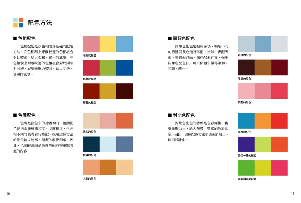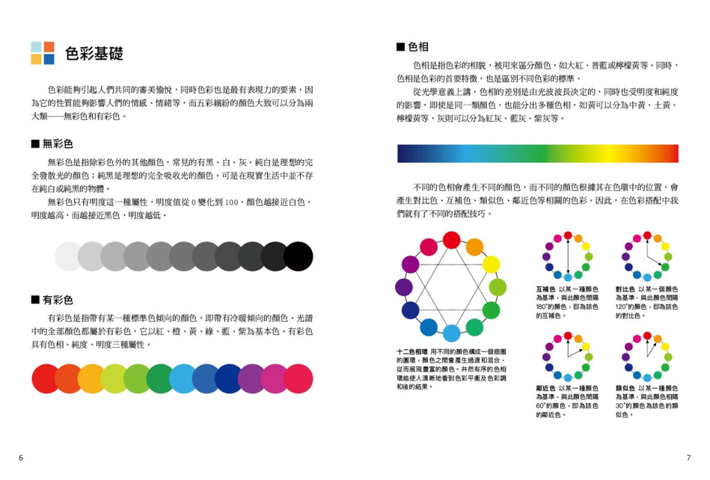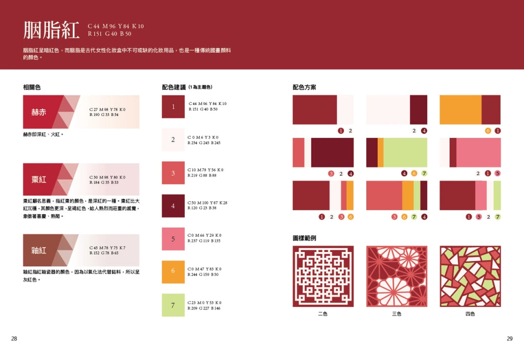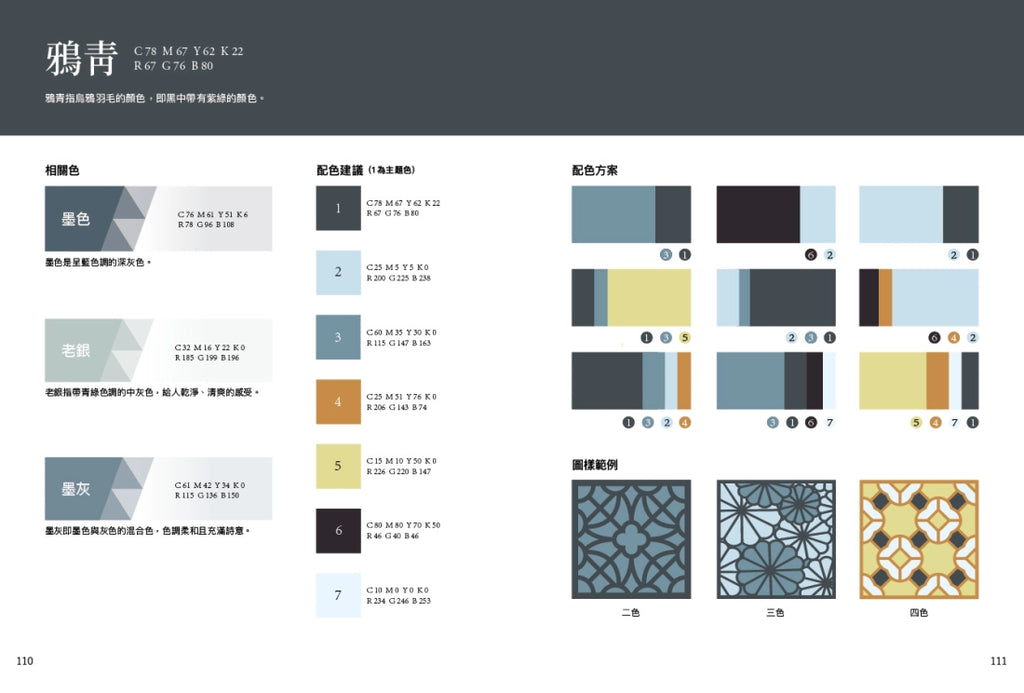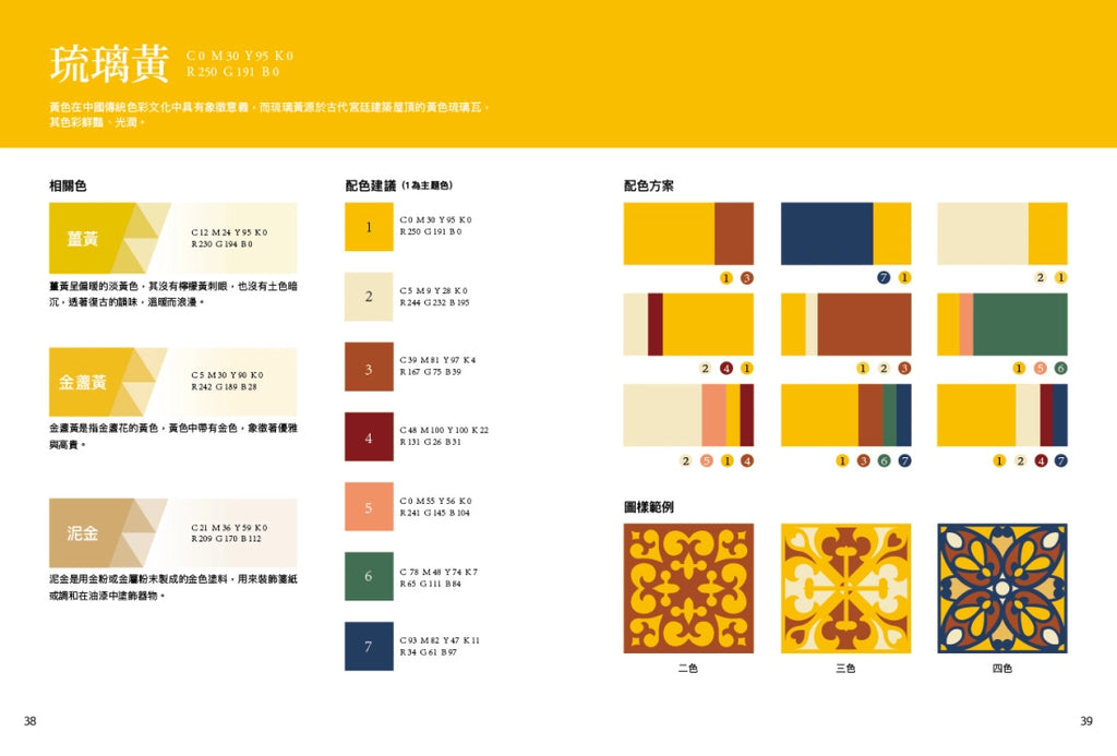 全書色彩均附有完整RGB、CMYK數值,並提供豐富配色示範靈感。