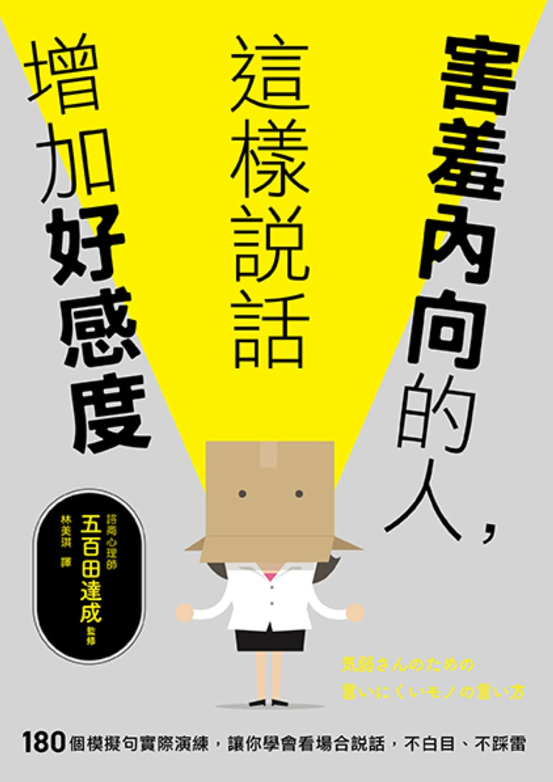本書中面向這些害羞內向的人,具體介紹了想「拒絕他人」、「請託別人」、「提供意見、」「向他人道歉」、「安慰他人」時如何說出你難以說出口的話。一共五個章節,共有108模擬句的實況演練。