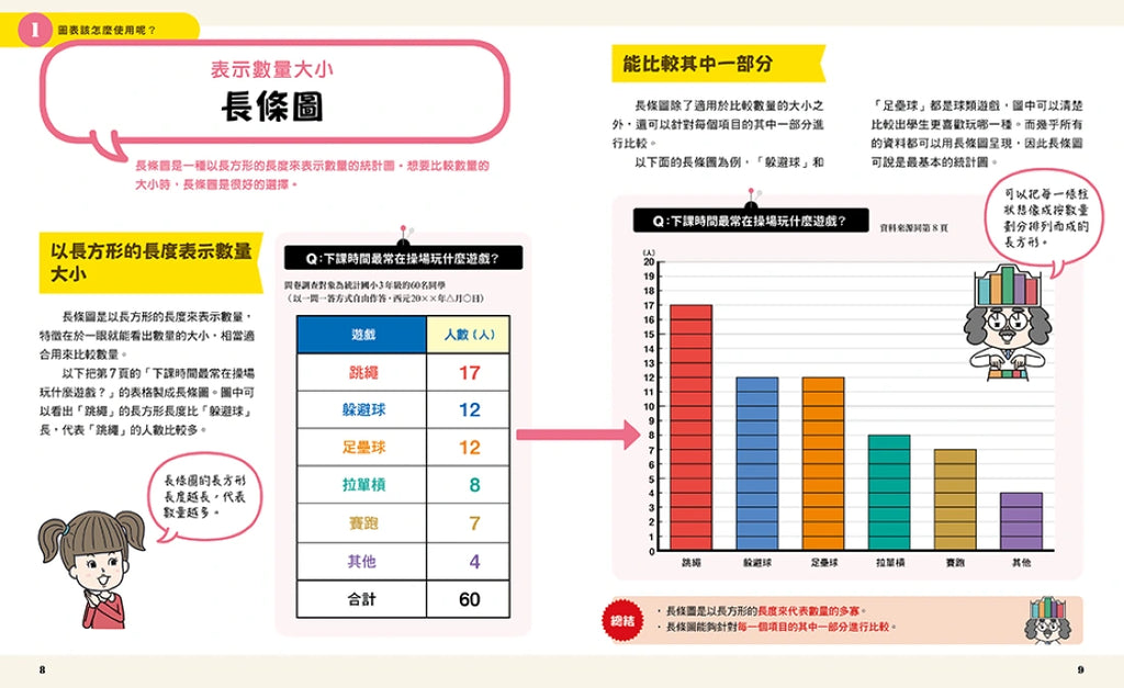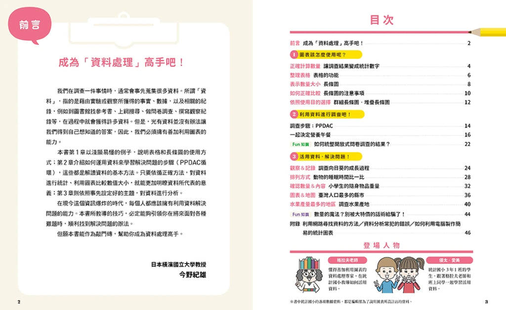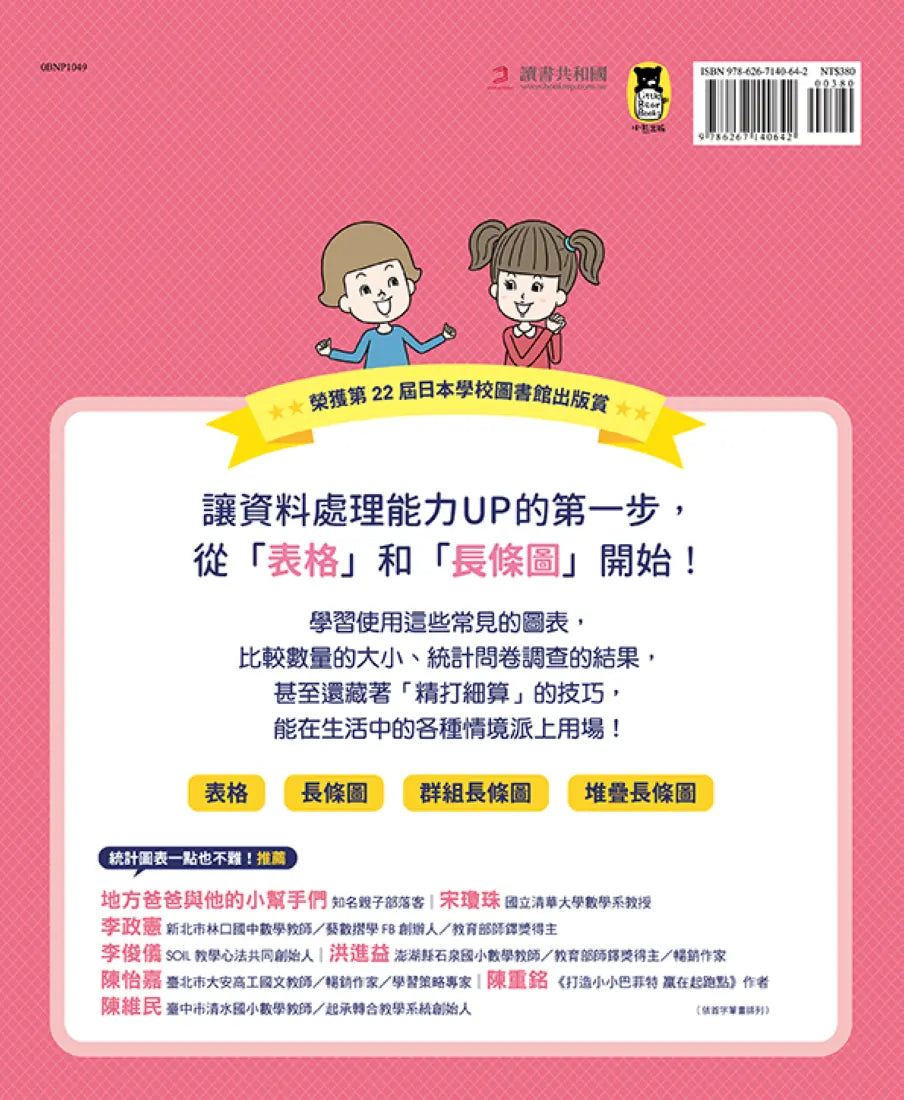 而「小學生的統計圖表活用術」系列誕生的目的,便是為了引領更多人進入統計的世界,感受這種靈活運用知識的樂趣。就由《小學生的統計資料活用術:叫我資料小達人1.比較數量大小》開始,以最基礎的「表格」與「長條圖」為開端,一起進入這個趣味橫生的資料處理國度吧!