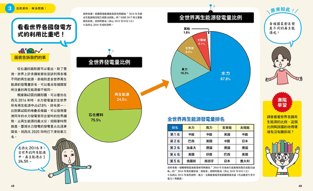 ★將自然、社會等跨領域科目帶入統計圖表,並鼓勵孩子主動探索實際的數據,扣合108課綱素養教育精神。