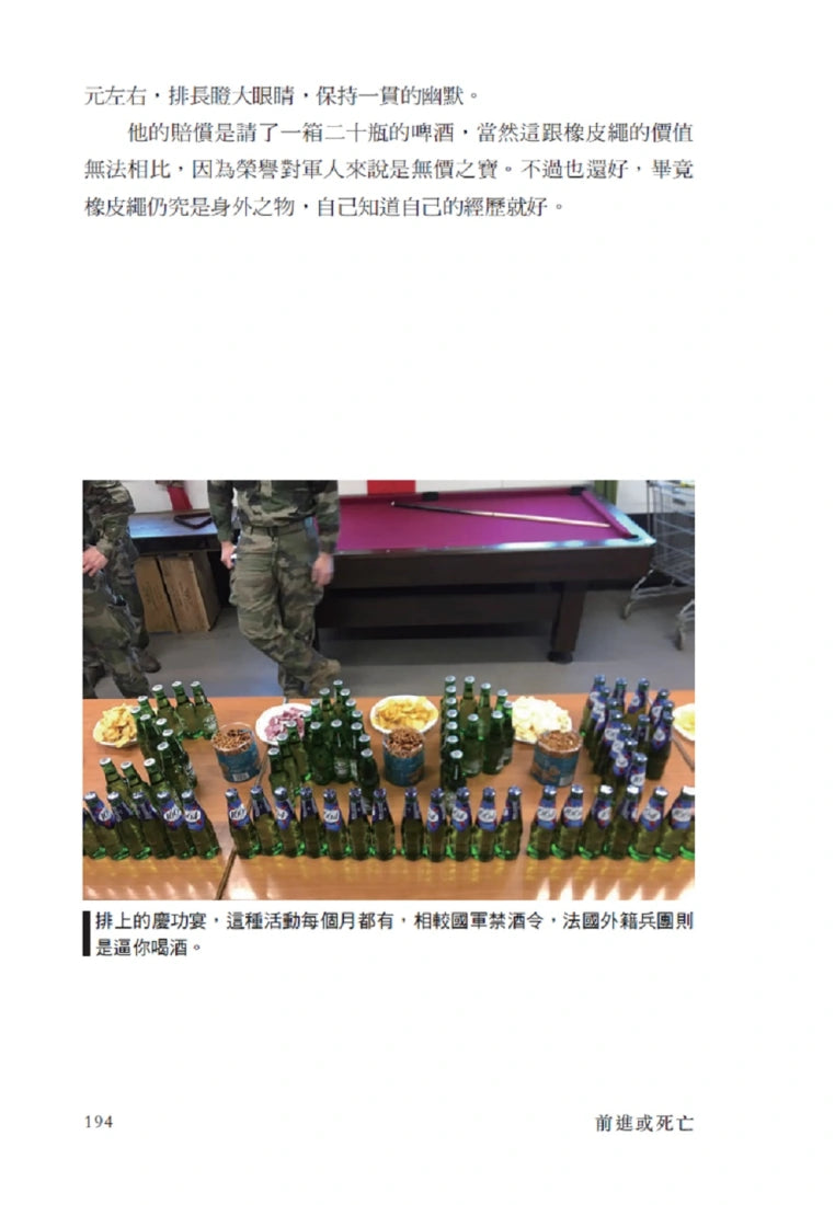 閱讀此書的過程中,你將陷入難以置信的驚嘆,試圖想像人們是如何在動輒四、五十度高溫的沙漠裡強行軍,彷彿唯有倒下的那一刻才是訓練的終點。同時,你也將被十九歲時便隻身來到法國外籍兵團參軍的年輕人所震撼,他並不是愚勇,而是始終清楚知道自己想要什麼,展現出強烈的意志和能量,毅然追尋內心深處渴望的目標。