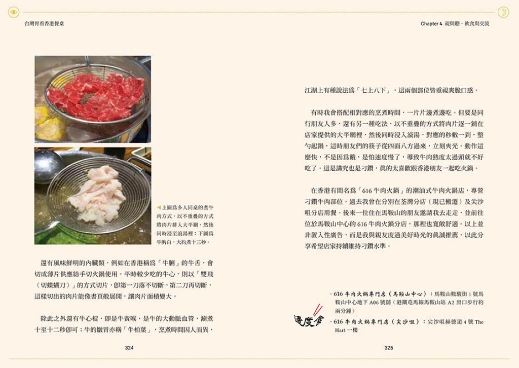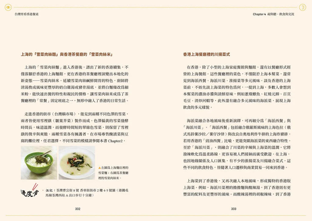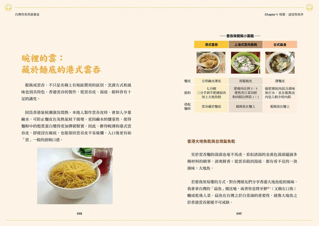 書中還收錄作者推薦的好味店家資訊,以及港台飲食名稱對照附錄,無論想到香港旅遊踩點,或對港台飲食想多加了解的讀者都適讀。