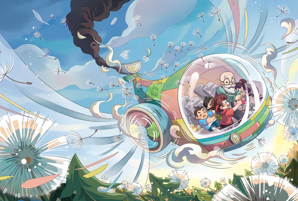 ◆科學小組全員被空中的雲團包圍啦,來認識白色小傘兵──蒲公英。