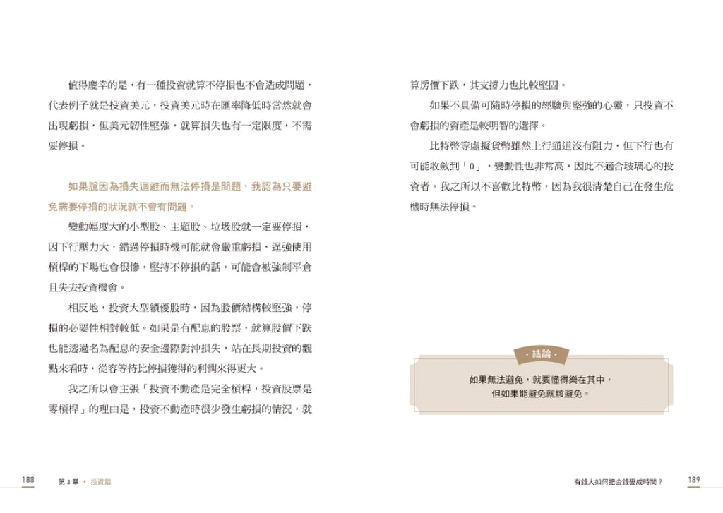 「想要致富一定要靠投資,而投資的基礎在於本金,要能把時間找回來,首先要先具備把時間變成財富的能力」