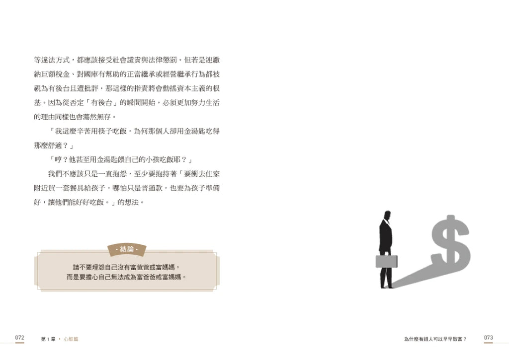 赤香:「作者指出,有錢人試圖建構一種『錢生錢』的體系,而不是透過 勞動 累積財富。 作者不僅簡單地傳達理財知識,也向讀者展示了有錢人如何將時間轉化為資產,從而指明了致富之路。」