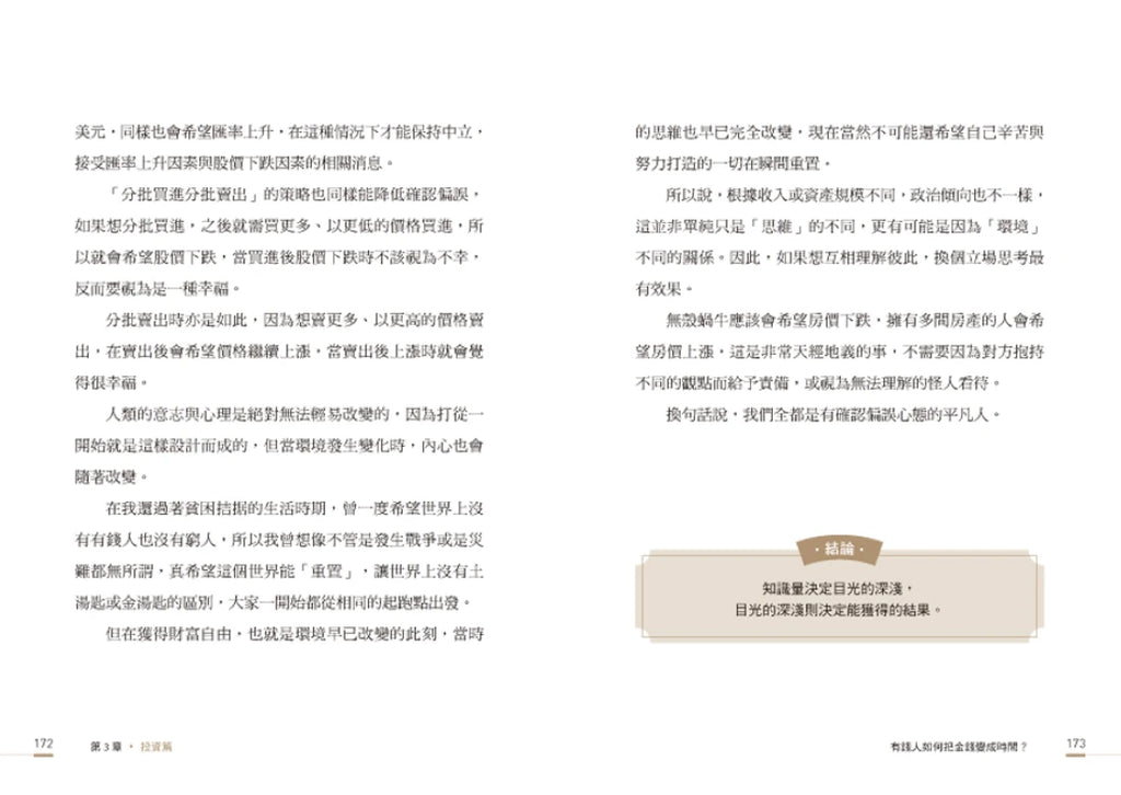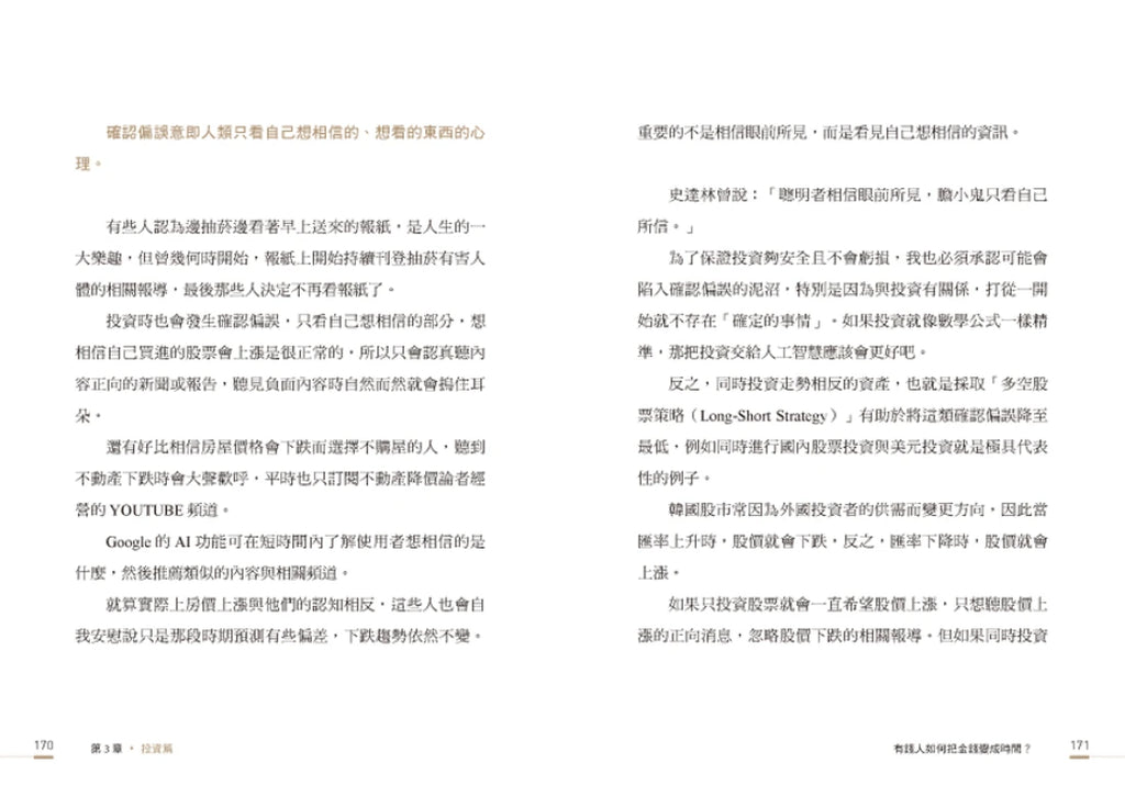 上班族CC:「我認為這本書的核心理念是『與其一次投入100萬,不如分100次投入1萬元!』以及『分批買進和分批賣出的投資方法』。此外,作者的投資哲學等許多內容都值得借鏡。」