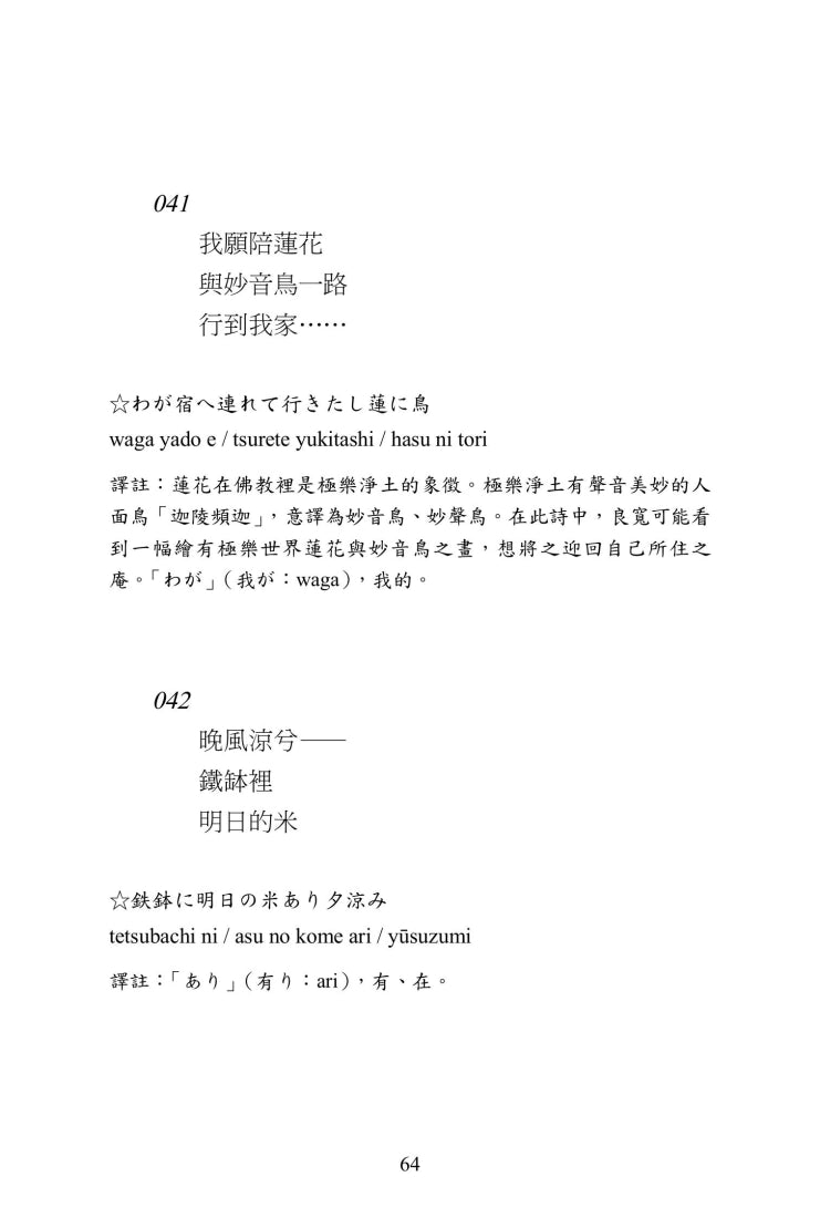 這不僅僅是一本詩選,更是詩人真實生命的流轉。他以簡淨語言書寫自然、人情與禪意,詩句如風、如月,如孩童的手毬,真摯無偽。無論是與童子遊戲、與友人唱和,或獨坐庵中望月、雪夜沉思,他的文字始終洋溢著慈悲與自由。