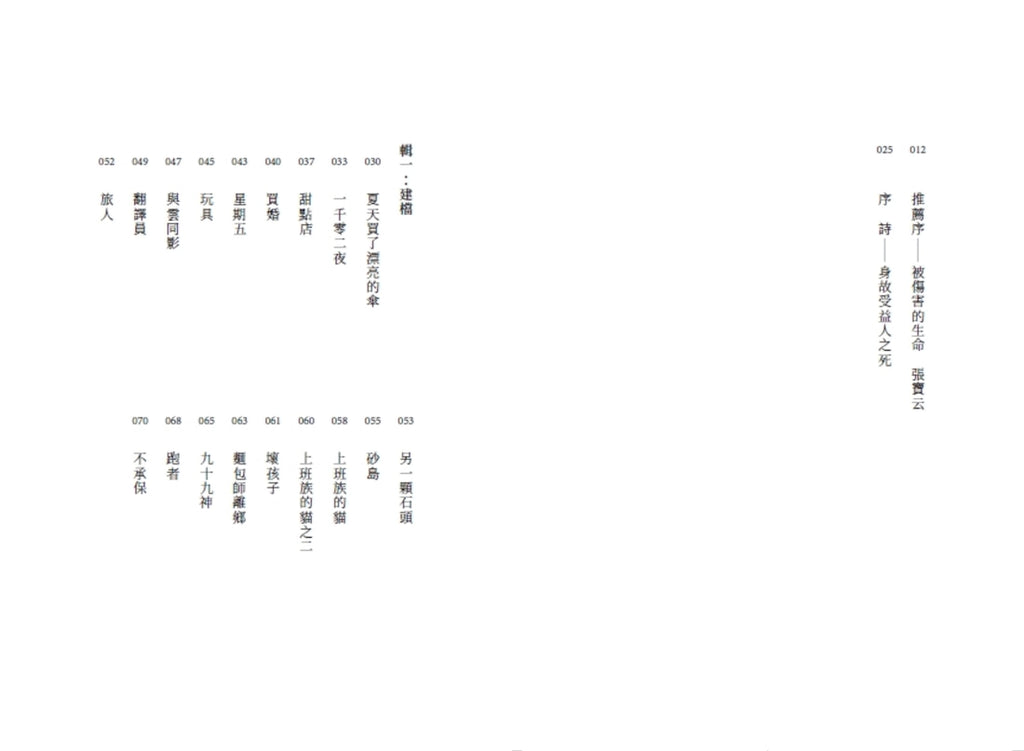誠如張寶云老師在推薦序中所說,詩集名稱「身故受益人之死」是頗高明的障眼法,突顯了保險員並不保險,受益人並不受益。這也提供了另一種閱讀方式,從作品中去推敲,究竟敘事者想要核保的是怎麼樣的一張保單?