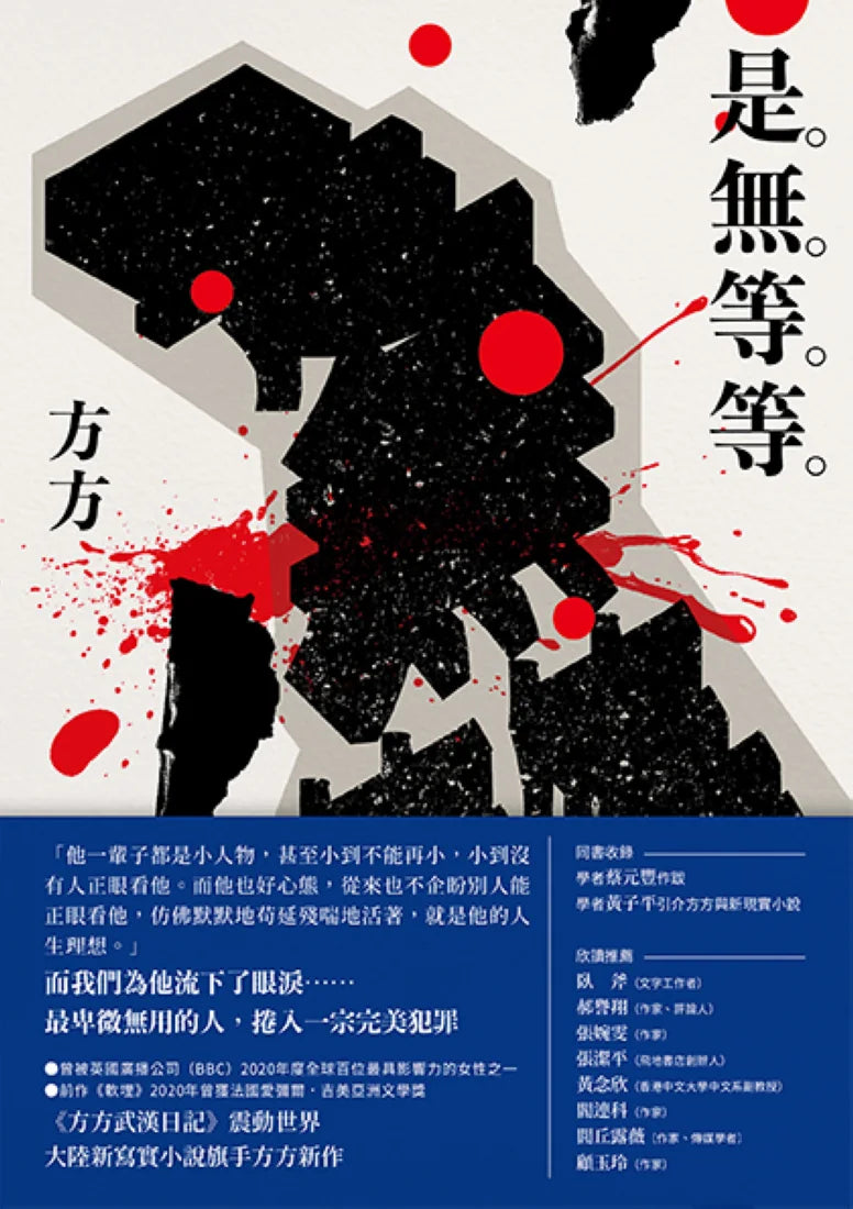 方方為中國大陸「新寫實小說」旗手,獲獎無數(包括第三屆中國當代女性文學創作獎、2011年度優秀女性文學獎、第十屆華語文學大獎年度傑出作家、第三屆路遙文學獎,法國愛彌爾.吉美亞洲文學獎等),曾任湖北省作家協會主席等。2020年其在社交媒體上書寫之《方方武漢日記》,被譯成英文出版後震驚世界,同年被英國廣播公司(BBC)2020年度全球百位最具影響力的女性之一。《是無等等》是方方繼2016年的《軟埋》之後睽違八年的首部長篇小說新作,亦是方方作品首度進入繁體出版。