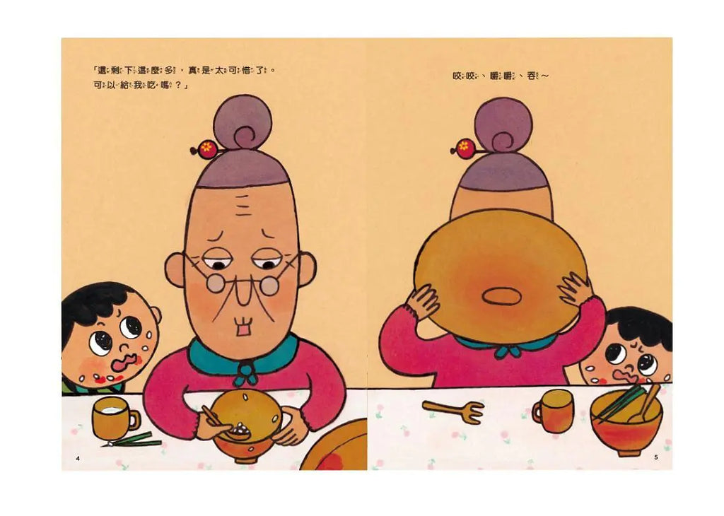 怕浪費奶奶的魄力,把我兒子給鎮住了!自從跟他一起讀了這本書之後,他老是把「怕浪費奶奶要來嘍!」這句話掛在嘴邊。(3歲兒媽媽)