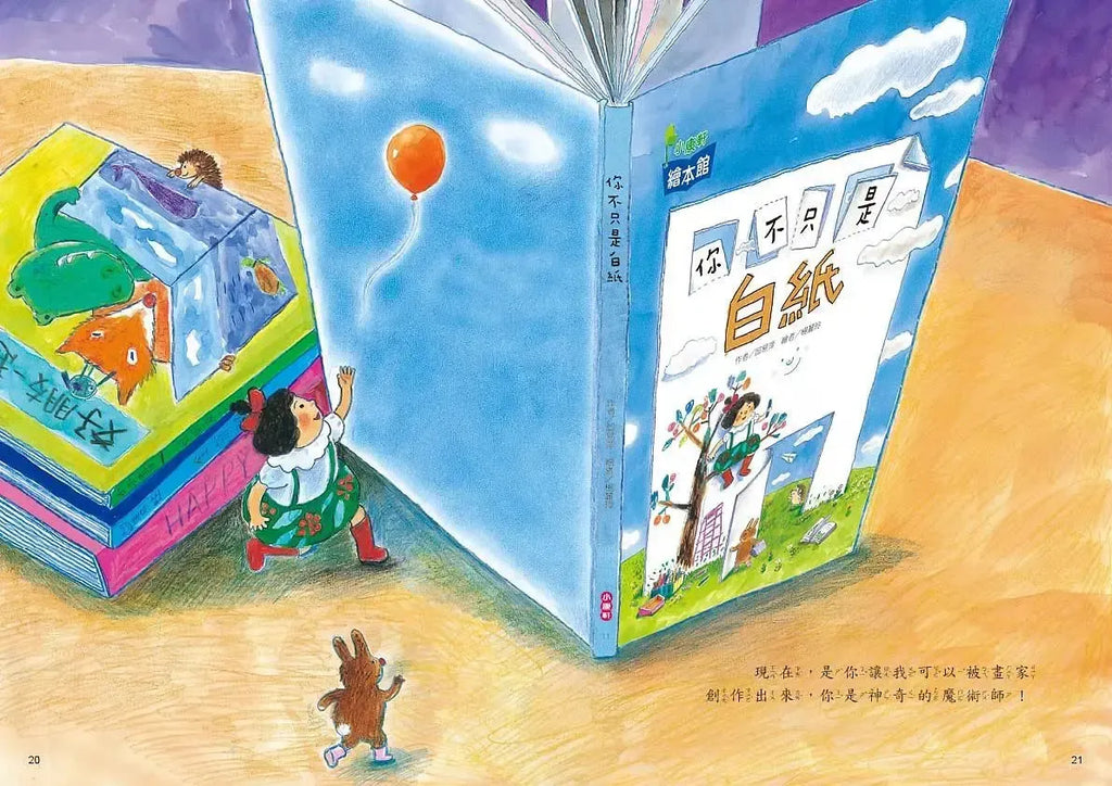 希望能透過《你不只是白紙》讓孩子發揮想像力,看見白紙的神奇及多元面貌,也學習珍惜樹木和紙張,並從中體會到每一個人都有不同特點和無限可能。