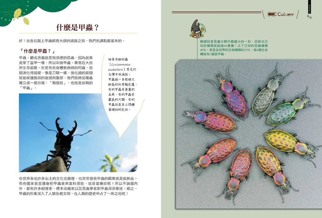本書收錄蟲迷們最愛的三大類甲蟲:獨角仙、鍬形蟲、金龜子;