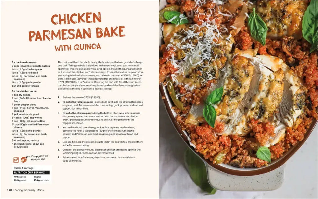 - Key macros for every recipe, including protein, fat, carb, and calorie counts