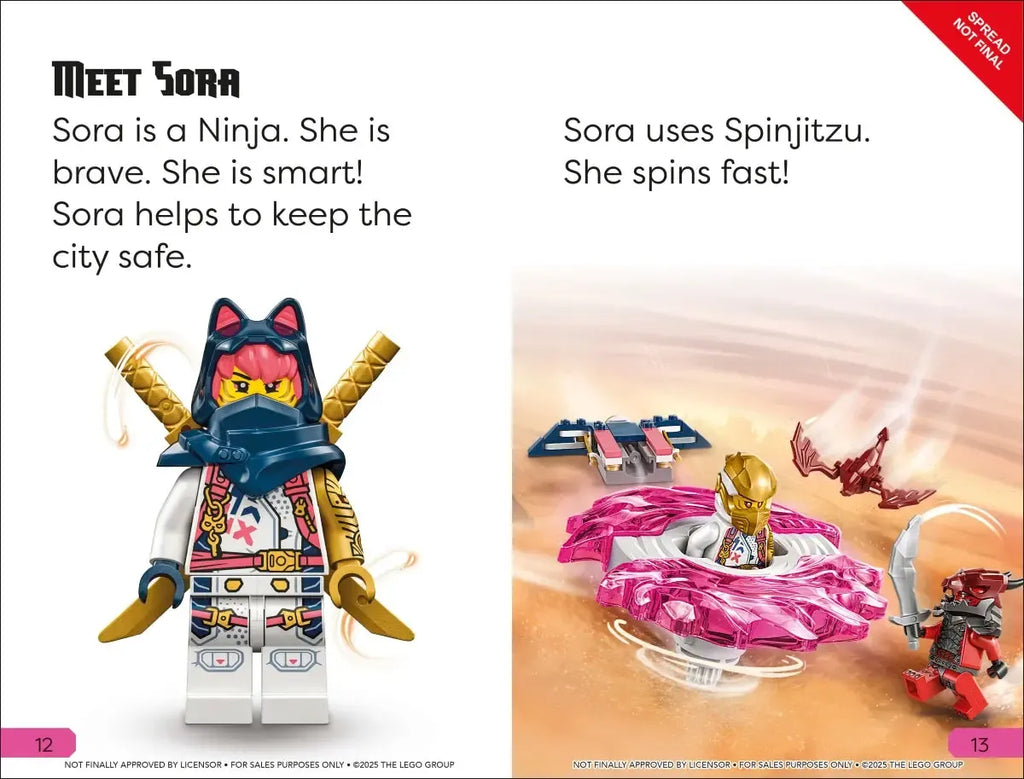 Meet: Arin and Sora and their dragon friend Riyu. Mentored by Ninjago legends Kai and Lloyd, they work together to protect the Merged Realms from villains who want to conquer them.