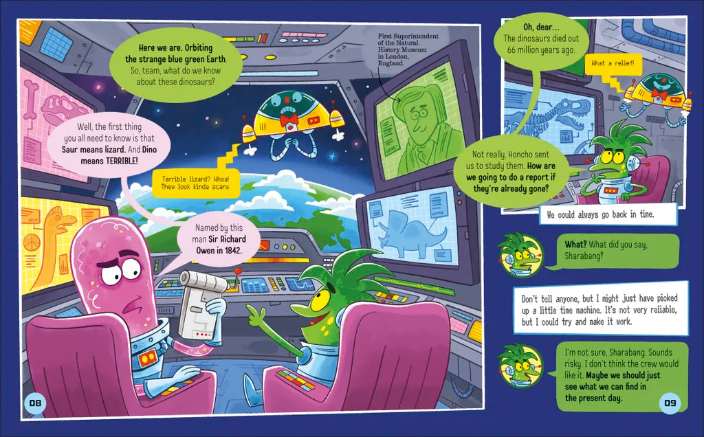 Hop aboard a spaceship and join a quirky crew of alien scientists as they visit and study the most fascinating place in the Universe – Planet Earth!