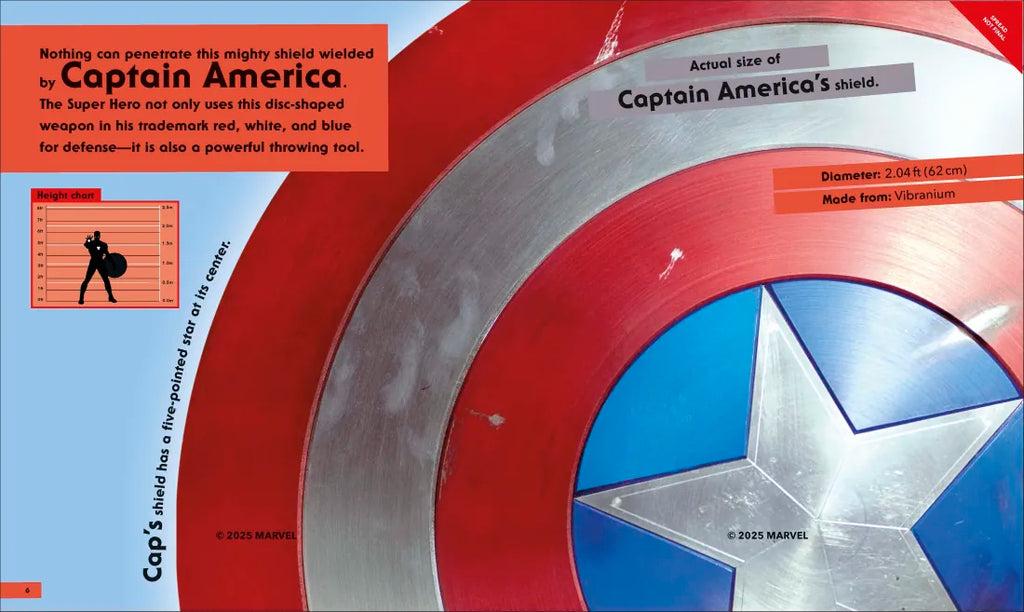 A striking visual guide that shows young MCU fans the sizes of their favorite heroes, villains, and props!