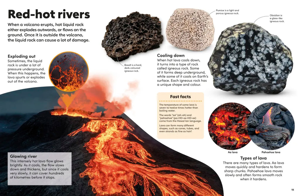 What is it like to stand near red-hot lava? When will the next super volcano erupt? And how do islands form? This volcano book for kids dives deep into our planet's fiery secrets, bringing to life everything from explosive volcanic eruptions on land to powerful underwater volcanoes that spur tsunamis. Discover the red-hot geological forces that shape our planet and learn about the brave scientists who work near these incredible natural wonders. Plus, activities such as "Path to Safety" and "What's This?" will keep you entertained again and again.