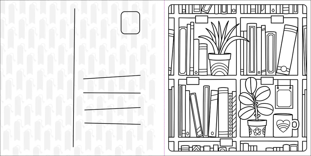 Immerse yourself in 30 cute, tear-out postcard-style coloring pages that bring the coziness of a bookstore to life.