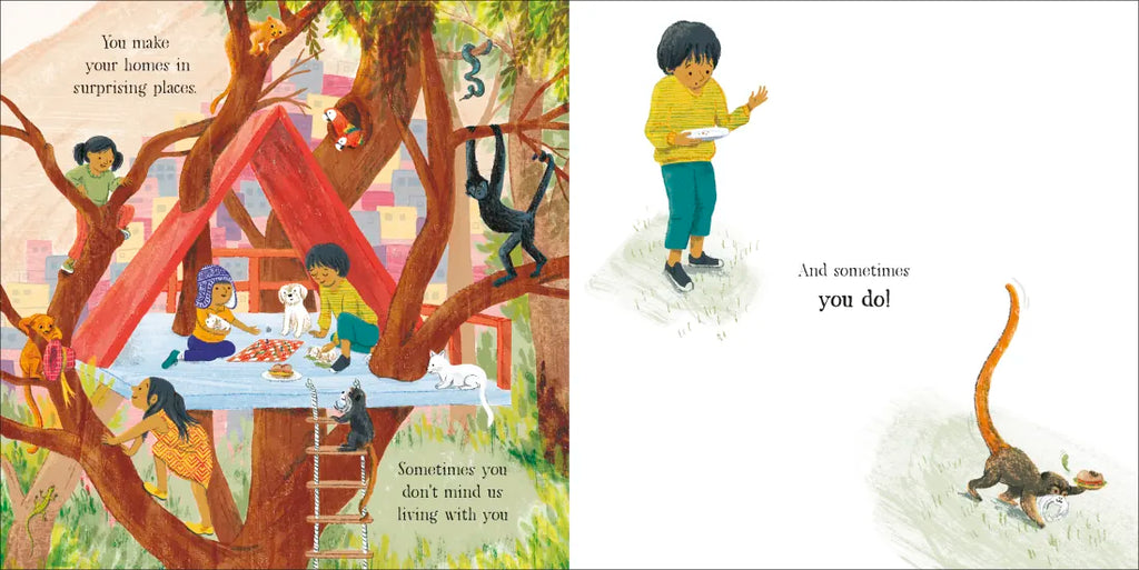 Each page is filled with vibrant scenes from around the globe, showcasing diverse cultures and breathtaking landscapes. Meet animals who reflect on their similarities and differences to humans, gently reminding us to share our world, appreciate its biodiversity, and care for one another.