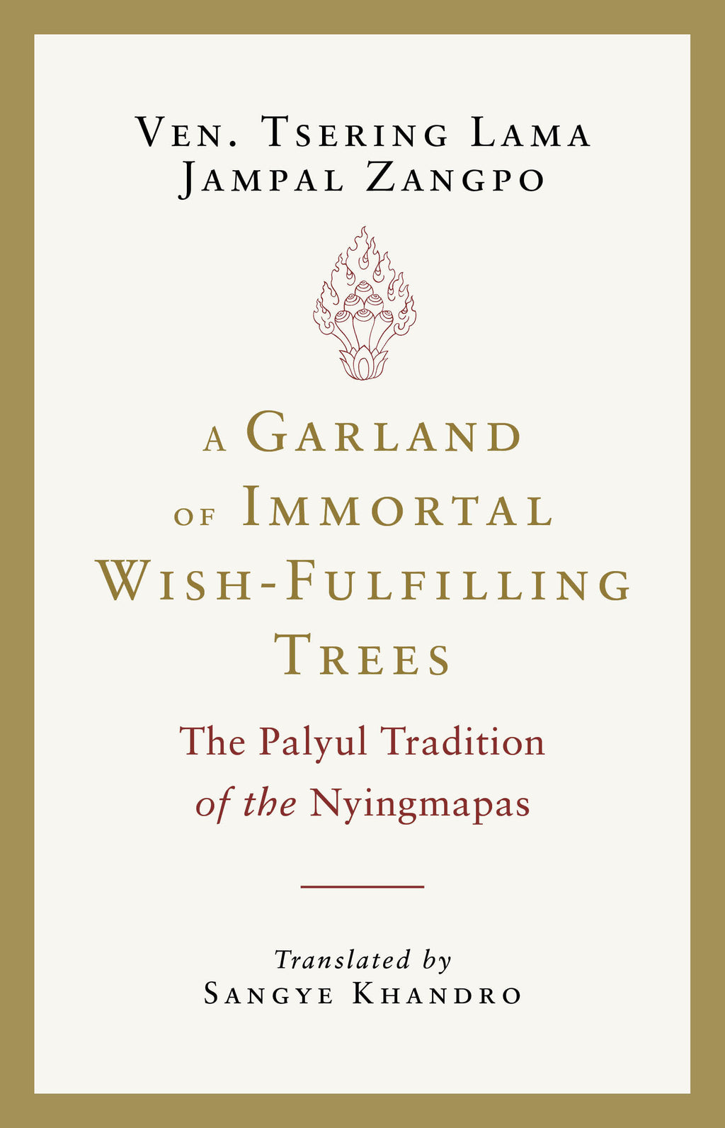 Palyul Namgyal Changchub Chöling, one the six Great Secret Nyingmapa mother monasteries in Tibet, has for centuries upheld the extraordinary non-dual teachings of the Great Seal and Great Perfection traditions. Featuring captivating portraits of the Palyul lineage’s throne holders, along with its history and continued preservation, A Garland of Immortal Wish-Fulfilling Trees traces the succession of the tradition’s leaders and reveals the source of its dharma lineage found in kama, terma, and pure vision. It also includes: