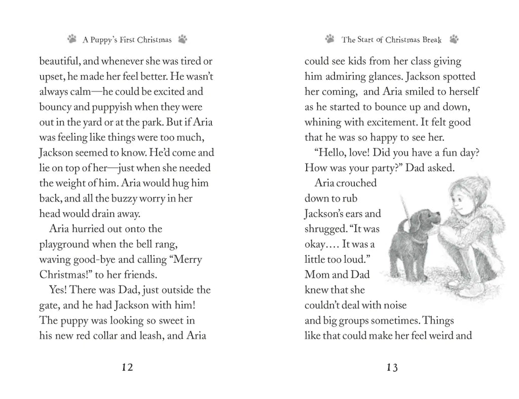 Holly Webb’s bestselling Pet Rescue Adventures series continues with a Christmas-themed offering, A Puppy's First Christmas. Aria is so excited to have a new puppy, Jackson. She is looking forward to taking him on long walks, building snowmen, and playing games. She even bought him a special present! But when her extended family comes to stay for the holiday, things don't go the way Aria had planned. Jackson scares Aria's younger cousin, and then he chews Grandma's fluffy boots! Will Aria and Jackson get their perfect Christmas?