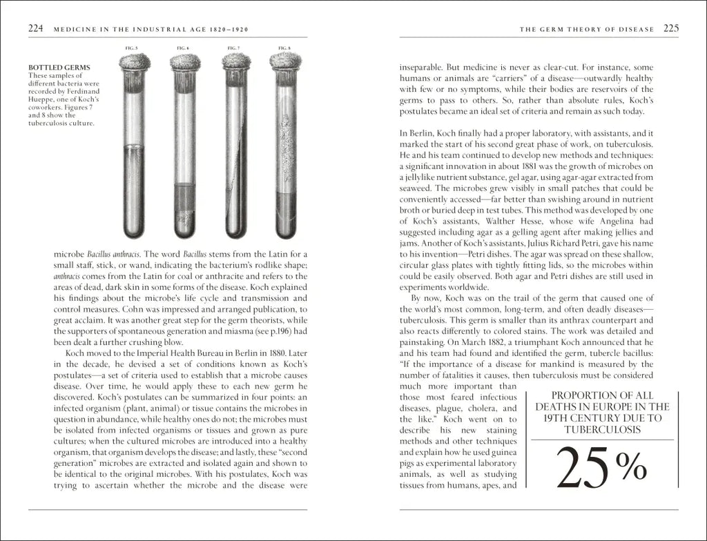 Witness early, bloody, anesthetic-free operations; see the first crude surgical instruments; trace the mapping of the circulatory system; follow the painstaking detective work that led to the decoding of the human genome; and understand the role that potions, cures, therapies, herbal medicines, and drugs have played in the human quest to tame and conquer disease, injury, and death.