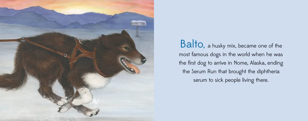 Follow these dogs as they traverse the mountains in winter with deliveries of life-saving medicine to remote villages, fight off attacking bears, and find lost children. Alaskan canines perform amazing deeds that exhibit intelligence, stamina, loyalty, and heroism—plus they offer friendly and furry companionship to their owners.