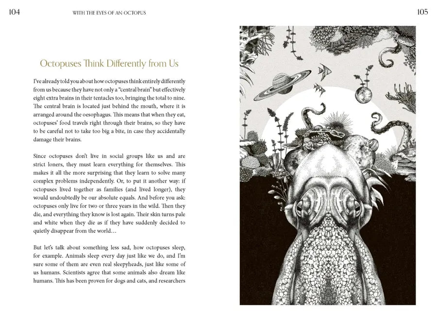 Octopuses are the oldest and most intelligent creatures on our planet, true aliens whose abilities amaze us. Michael Stavarič and Michèle Ganser have created a non-fiction book full of surprising twists and turns that offer much more than just imparting knowledge