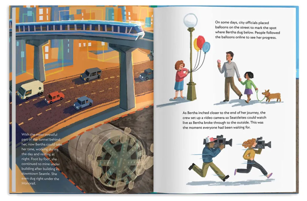 Kids interested in engineering and how machines function will love learning about the tunnel boring machine, how it worked, and how Bertha's crew solved problems that arose along the way to ultimately construct an amazing, earthquake-safe highway under the city.