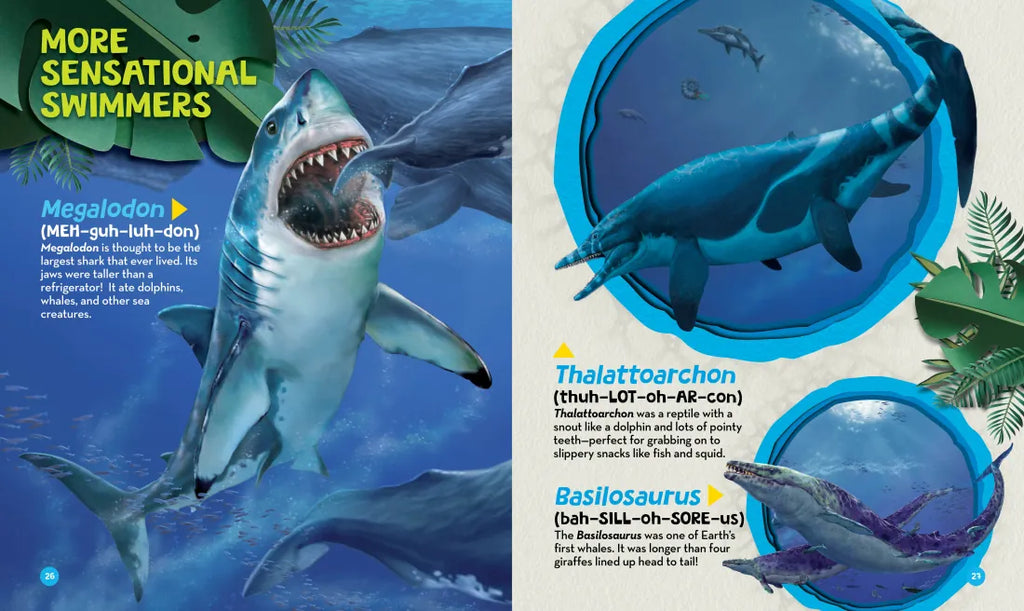 But the fun doesn’t stop at dino names—like Micropachycephalosaurus, the longest ever dinosaur name. Kids will get to know prehistoric mammals like Mammuthus, better known as the woolly mammoth, and ocean creatures like the giant prehistoric shark that once ruled the sea: Megalodon.