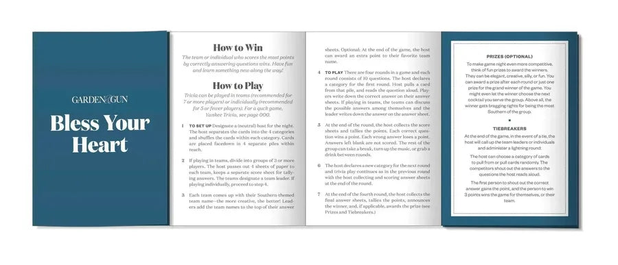 • Join the party and prove your love of Southern life and culture with this trivia game, featuring 200 questions that cover such topics as: Travel & Places, Food & Drink, Sports & Culture, and Literature & Arts.