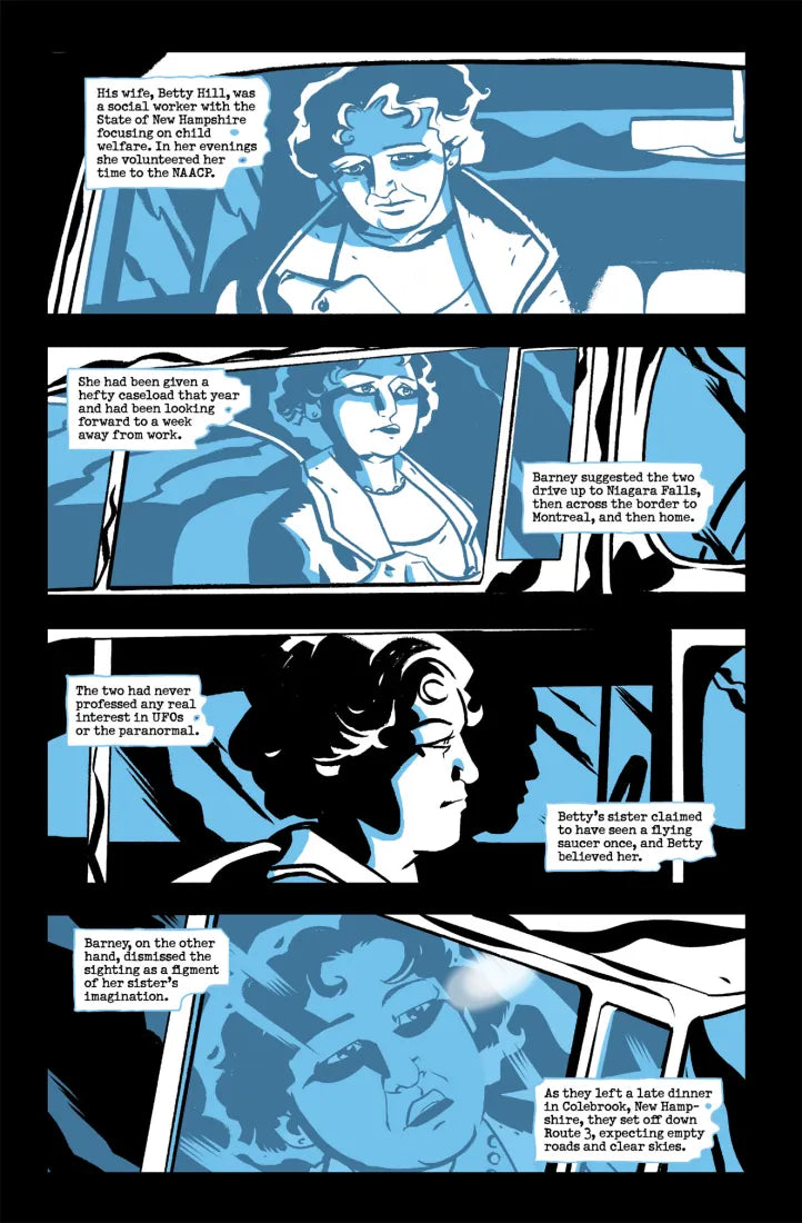James Tynion IV presents what he calls his “True Weird” stories. Tales of ordinary people encountering the strange and the impossible. Teaming with artist Michael Avon Oeming and letterer Aditya Bidikar, they retell some of the most popular UFO and alien encounter accounts starting with two infamous cases:
