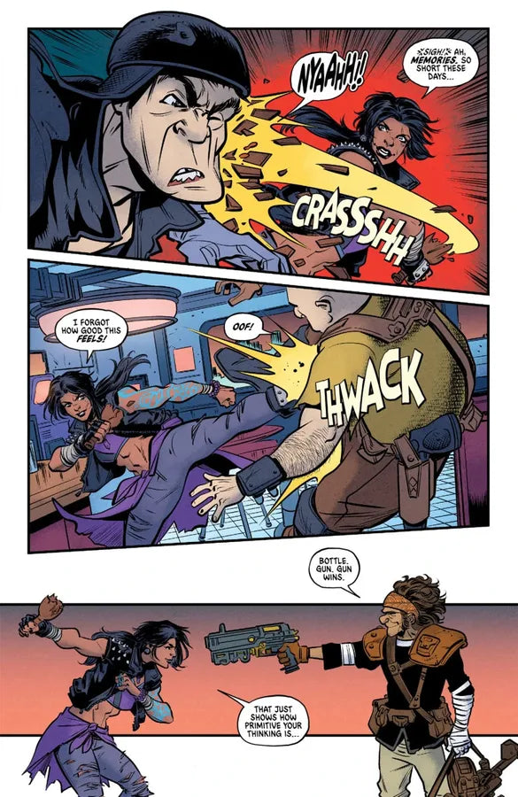 Written by Amy Chu (Carmilla: The First Vampire, Red Sonja) with cover and interior art by Mike Norton (Hellboy and the B.P.R.D. 1956, Revival), the creative team behind this series also includes Borderlands comics veterans colorist Heather Breckel (Tiny Tina’s Wonderlands: Land of the Giants, Plants vs. Zombies) and lettering team Deron Bennet & AndWorld Design (Tiny Tina’s Wonderlands: Land of the Giants, Masters of the Universe: Revelation). This powerhouse crew assembles to tell the story of a mission unlike any other—because there is no one quite like Moxxi!