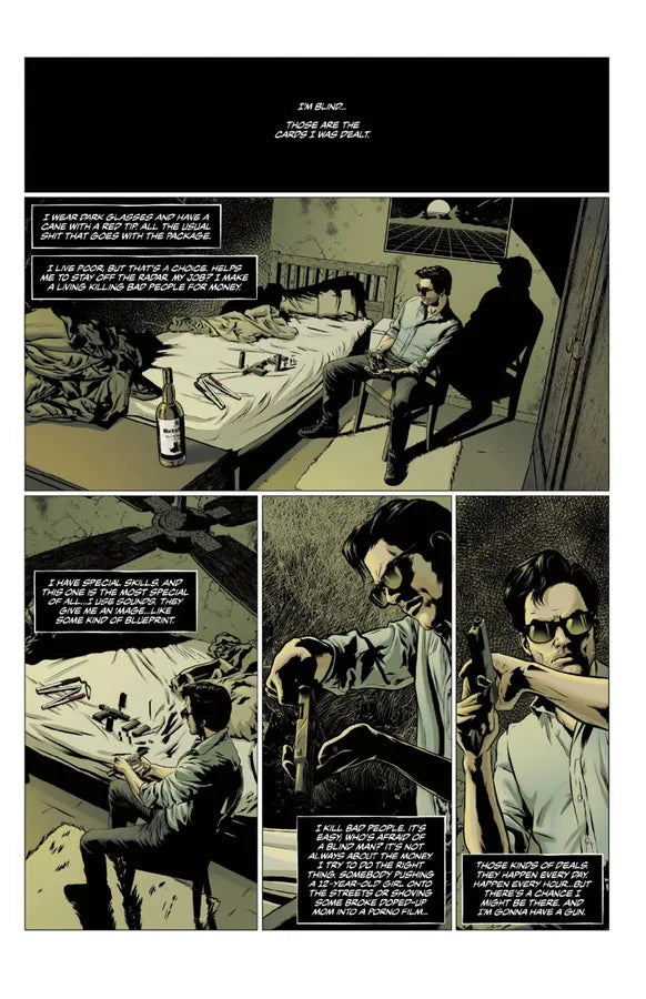 Raised from birth by rouge CIA agents, he’s grown into a borderline alcoholic and sex addict who travels the globe, living off the grid and taking out gangsters, deviants, and corrupt politicians—all while engaging in his own hedonistic pursuits as a hitman.