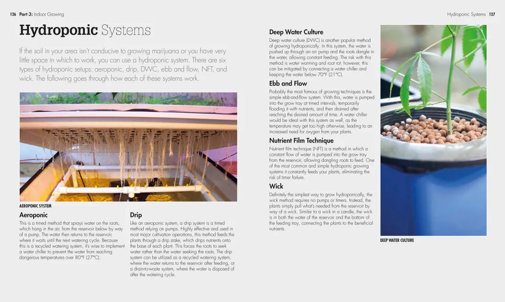 - The full spectrum of options available for growing marijuana, from indoor, climate-controlled systems to open-air and outdoor growing