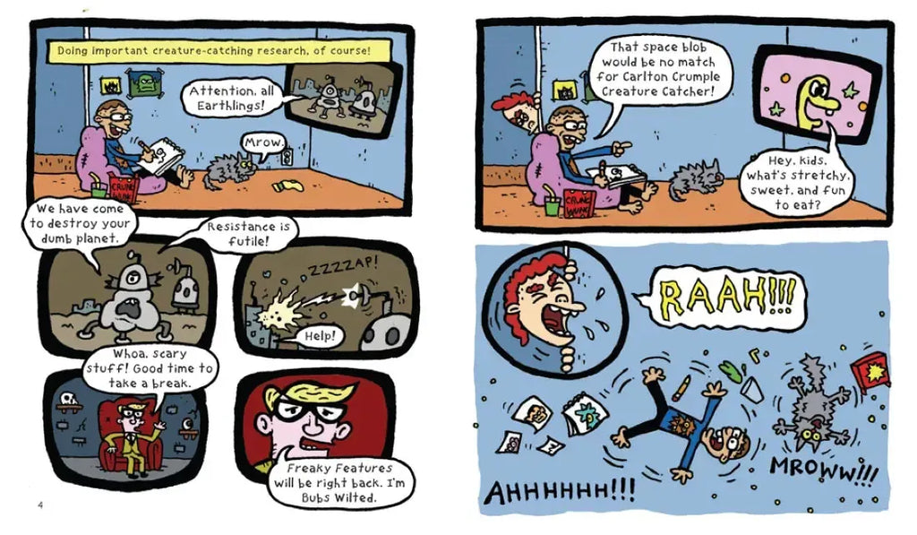 Bold artwork and otherworldly antics combine in the third installment in the Carlton Crumple Creatuture Catcher series. Middle grade graphic novel readers, including fans of series like Lunch Lady and Dog Man, will eat this up.