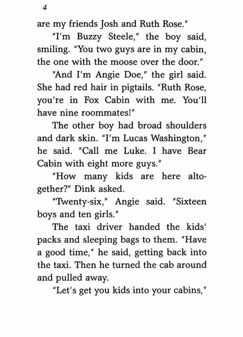 Welcome to summer camp for detectives! The kids can’t wait to spend a week following clues and learning about the science of crime solving. Soon all the campers are working on a mystery. But while Dink, Josh, and Ruth Rose are figuring out their part of the puzzle, they stumble onto something suspicious. Could a real crime be happening at detective camp?