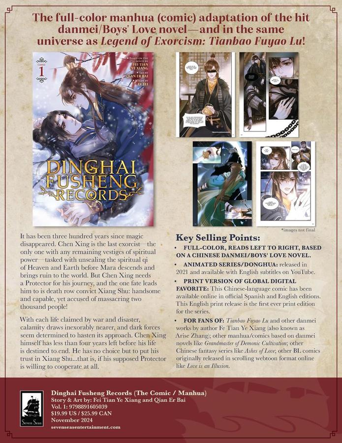 The full-color manhua (comic) adaptation of the hit danmei/Boys' Love novel--and in the same universe as Legend of Exorcism: Tianbao Fuyao Lu!